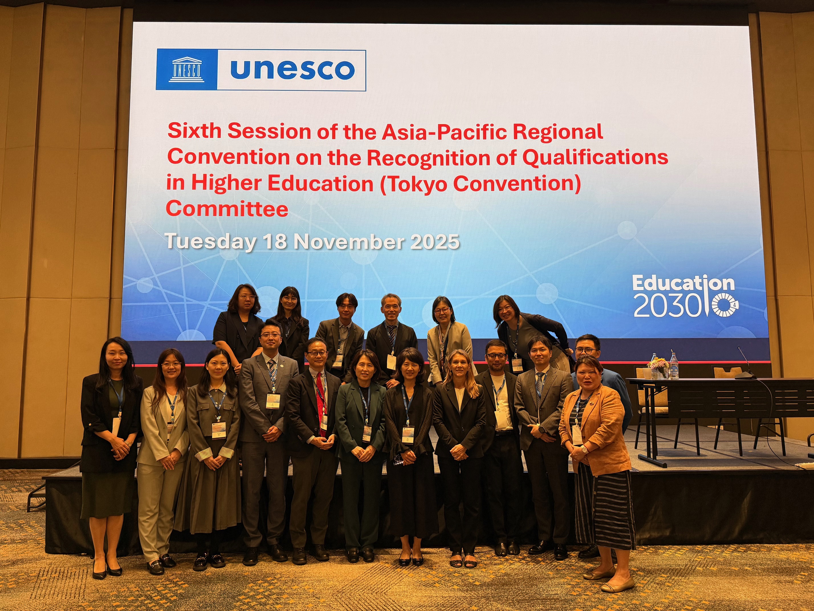 During the Sixth Session of the Tokyo Convention Committee, participants reviewed the progress of implementation and discussed the next steps of the Tokyo Convention 2030 Roadmap. Member States also exchanged experiences on addressing emerging challenges such as the rise of education fraud, digital credentials, and micro credentials, and explored ways to strengthen National Information Centres and advance policies that support cross-border mobility. In the panel session, the Ministry of Education of the Republic of Korea chaired the session on “Building a community of practice and fostering inclusion,” leading discussions on the future direction of qualification recognition in the era of artificial intelligence.